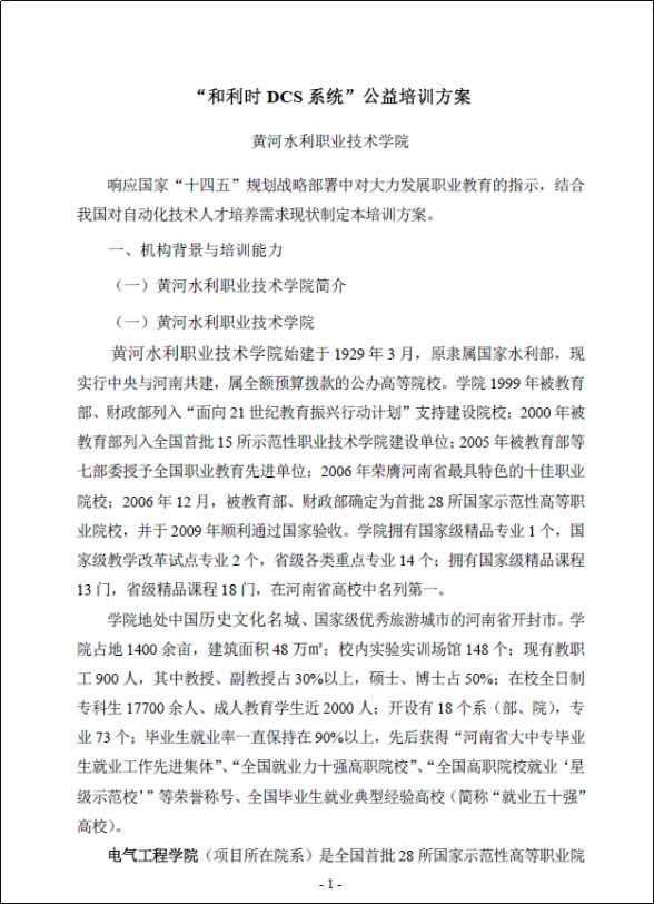 和利时DCS系统公益培训方案