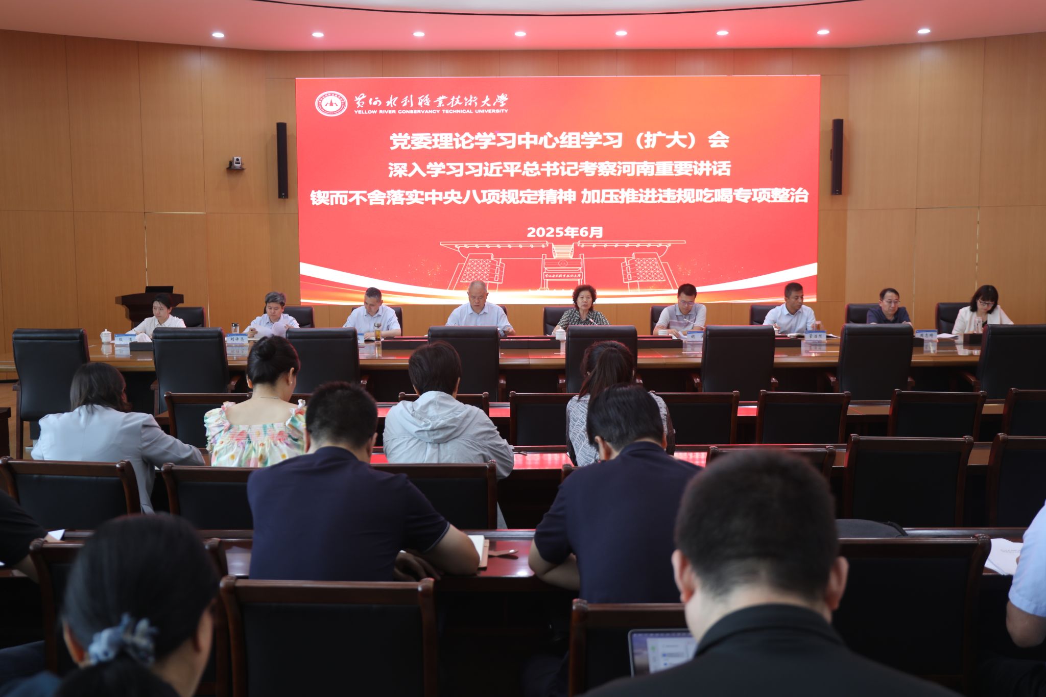 6月26日,完美网页版在行政楼第五会议室召开党委理论学习中心组专题学习(扩大)会,深入学习贯彻习近平总书记考察河南时重要讲话精神,贯彻落实中央八项规定精神,加压推进违规吃喝专项整治。党委理论学习中心组全体成员、全校各部门主要负责人参加会议。会议由党委书记周保平主持。