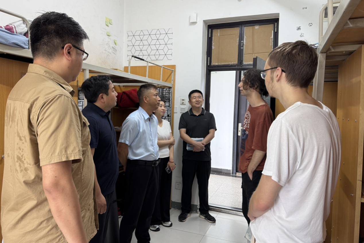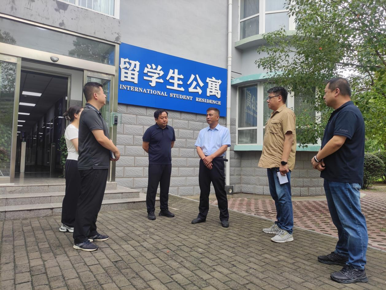 暑期将至,为确保留学生暑期学习生活的安全稳定、筑牢在校留学生安全防线,7月1日上午,副校长菅浩然带队到留学生公寓开展安全专项检查。