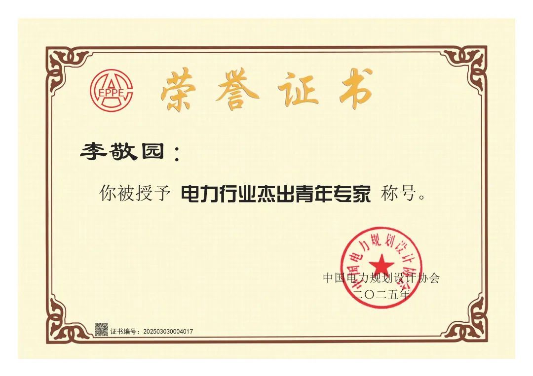 近日,中国电力规划设计协会第四批电力行业杰出青年专家评选结果正式揭晓,完美网页版校友李敬园被授予“电力行业杰出青年专家”称号。