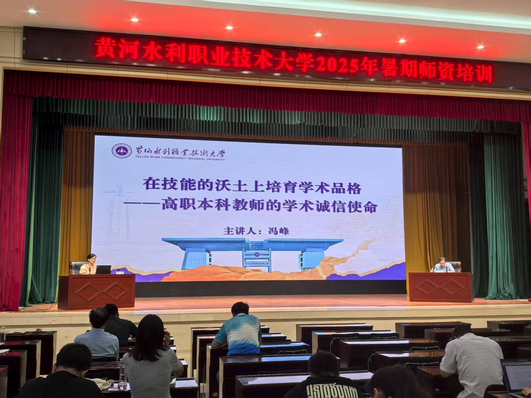 科技处处长冯峰教授作《在技能的沃土上培育学术品格·高职本科教师的学术诚信使命》报告,从学术品格要素、学术诚信使命、学术诚信要求及学术不端案例四方面,系统阐述了教师学术素养提升路径,呼吁教师恪守学术诚信。