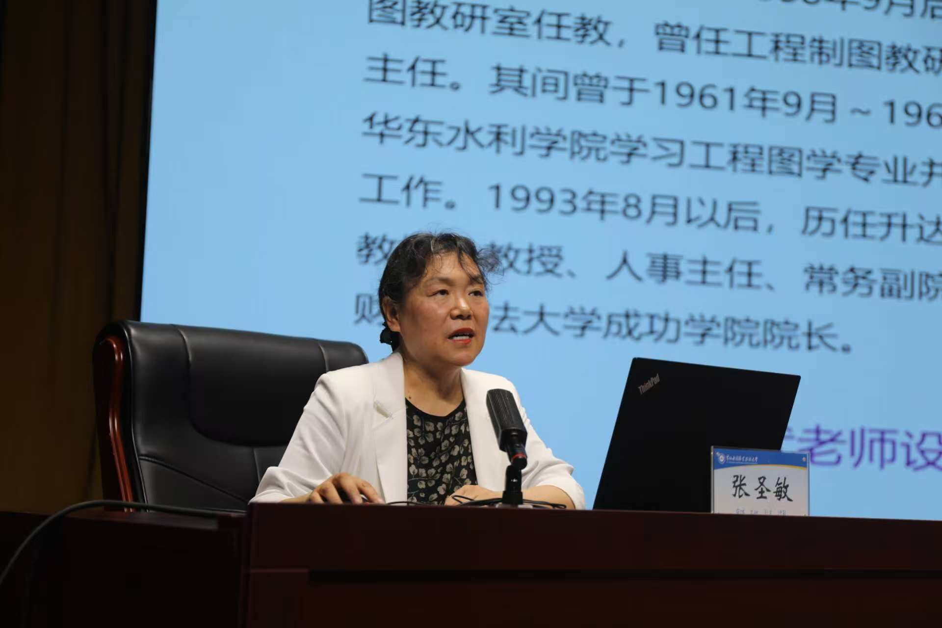 水利工程学院张圣敏教授作《以水利工程制图为例:分享黄河精神在教书育人中应用》报告,通过分享退休教师张强武设立“劲崧奖学金”的案例,生动展现黄河精神在教书育人中的传承脉络。