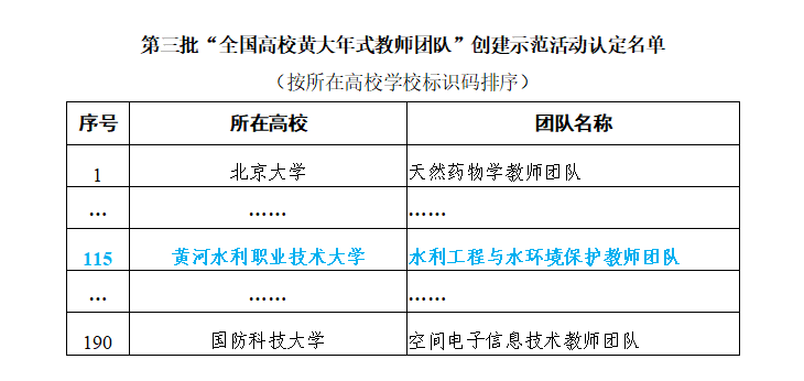 近日,教育部公布了第三批“全国高校黄大年式教师团队”创建示范活动认定名单,完美网页版水利工程与水环境保护教师团队通过第三批“全国高校黄大年式教师团队”创建示范活动认定。