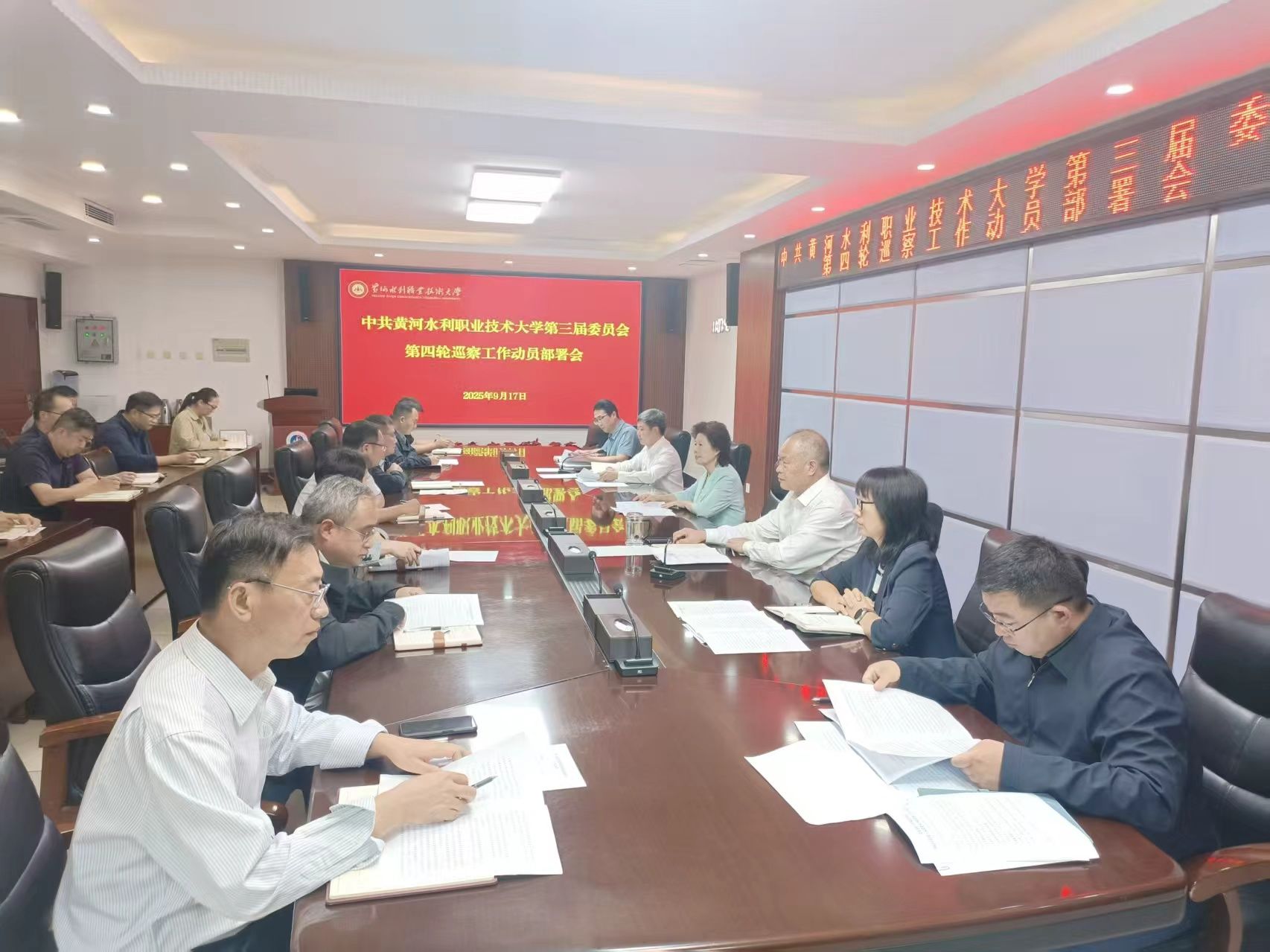 9月17日上午,中共黄河水利职业技术大学第三届委员会第四轮巡察工作动员部署会在行政楼第一会议室召开。校党委书记、巡察工作领导小组组长周保平,校党委副书记、工会主席、巡察工作领导小组副组长杨士恒,校纪委书记、巡察工作领导小组副组长刘许亮出席会议,党委巡察工作领导小组成员,第四轮巡察组成员,被巡察党组织领导班子成员参加会议。会议由刘许亮主持。