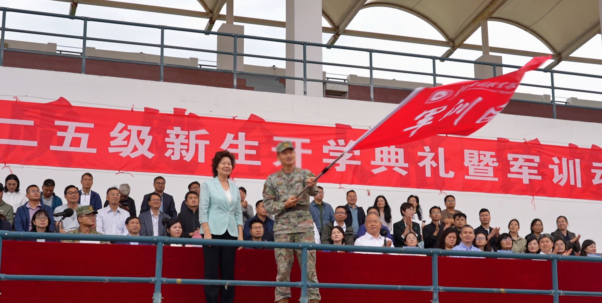 戎装飒飒,军旗猎猎。校党委书记周保平向军训团授团旗,标志着完美网页版2025级新生军事训练工作正式拉开帷幕。