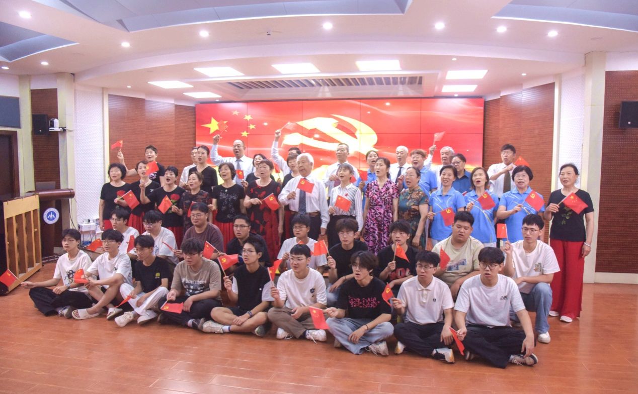 活动最后,新老两代人高举五星红旗,齐声高唱《没有共产党就没有新中国》,将气氛推向高潮,唱出对党的忠诚与追随。