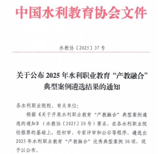 近日,从中国水利教育协会传来喜讯,由环境工程学院申报的产教融合实践案例《能力图谱领航重塑育人体系,实践中心护航培育生态卫士》,经过多轮严格评审,成功入选2025年水利职业教育“产教融合典型案例”。此次入选,标志着环境工程学院在深化产教融合、创新人才培养模式方面的探索与实践获得了行业权威的高度认可,是学院发展历程中的又一重要里程碑。