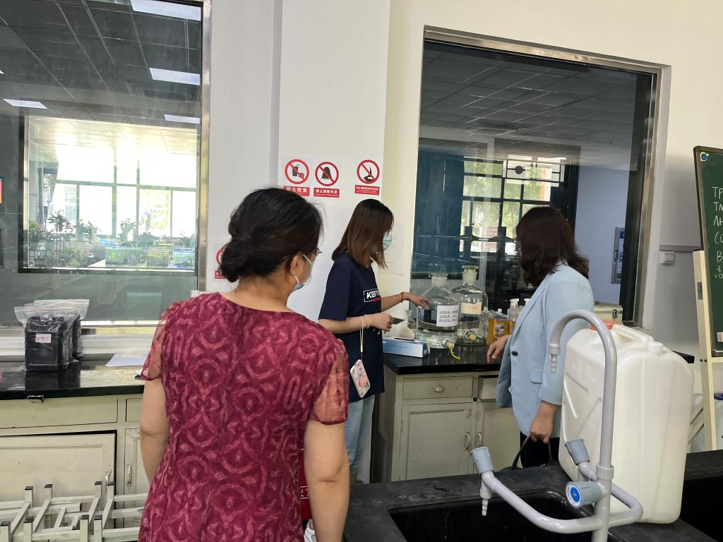 为贯彻落实学校关于开展2022年“安全生产月”活动通知要求,进一步完善高校实验室安全防范体系建设和消除实验室化学品安全隐患,6月21日上午,在实训中心管理老师的带领下,环境工程学院党总支书记高琼、院长冯峰到8号实训楼对全院教学科研实验室开展学期末安全检查工作。