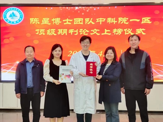 首先,党总支书记高琼为陈星博士颁发了荣誉证书。随后,在全体参会人员的见证下,党总支书记高琼、院长冯峰共同将陈星博士为第一作者、发表的中科院一区顶级期刊论文的封面和完美(中国)官方放入创新成果榜中,并张贴了中科院SCI一区、论文影响因子标识。
