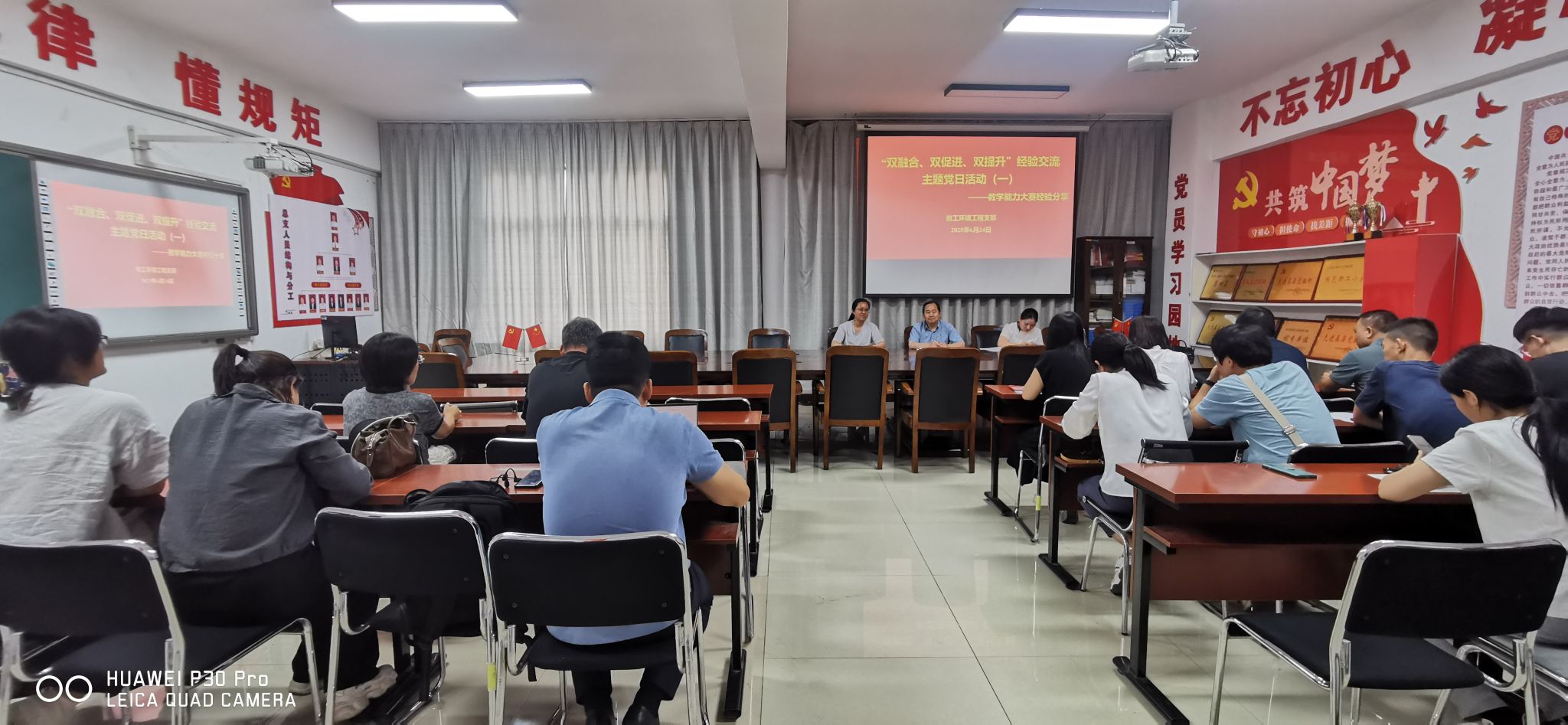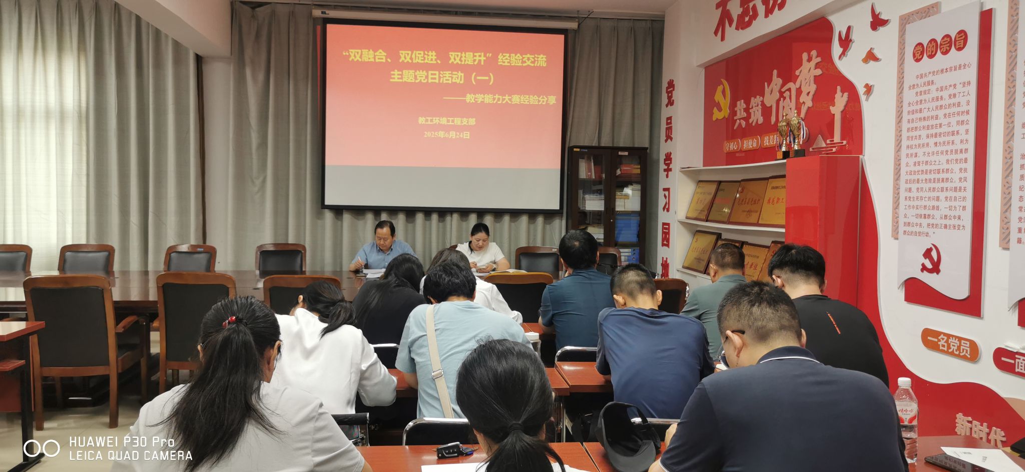 为深入推进党建工作与教育教学工作深度融合,实现党建与业务“双融合、双促进、双提升”,教工环境工程支部于6月24日在SY5405会议室组织开展了“双融合、双促进、双提升”经验交流主题党日活动,聚焦教学能力大赛经验分享,为党员教师搭建起一个交流互鉴、共同成长的平台。