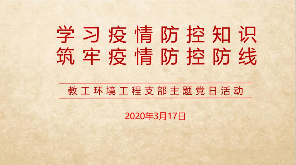 为贯彻落实学校党委关于疫情防控工作的决策部署,推动广大党员同志学习疫情防控知识,增强疫情防控意识,筑牢疫情防控防线,坚定打赢疫情防控阻击战的决心和信心。环境工程学院教工环境工程支部于3月17日下午通过腾讯会议举行了“学习疫情防控知识,筑牢疫情防控防线”主题党日活动。会议由教工支部书记王振伟主持,全体教工党员参加了此次活动。