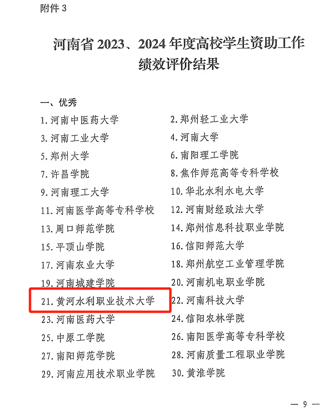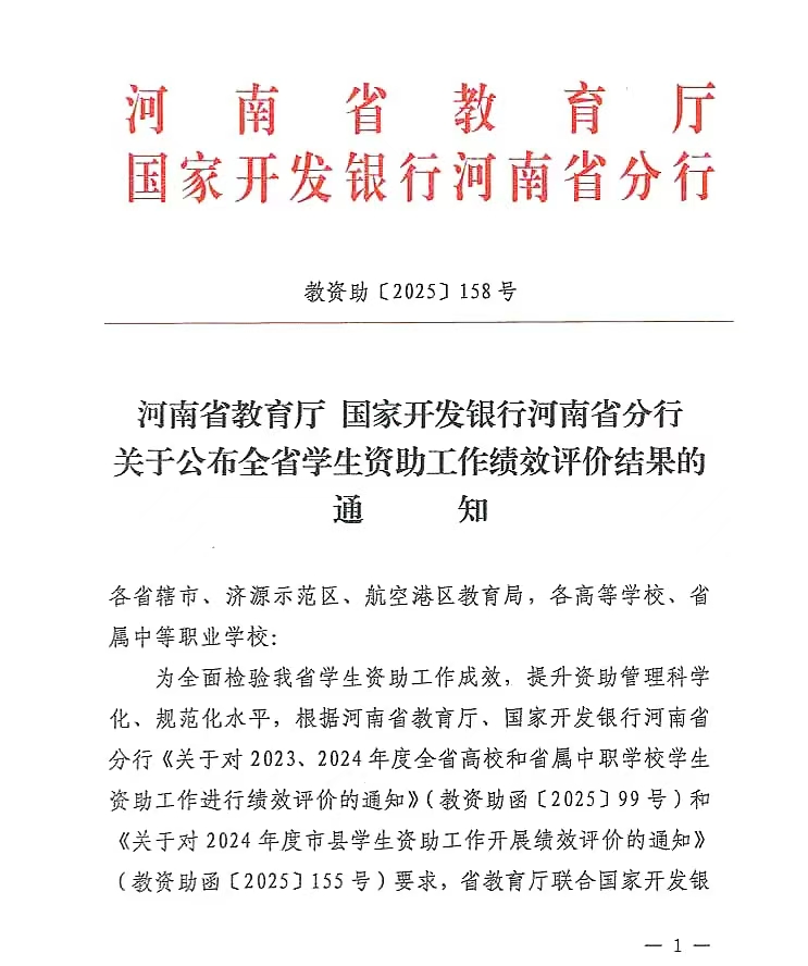 学校在河南省高校2023、2024年度学生资助工作绩效评价中获“优秀”