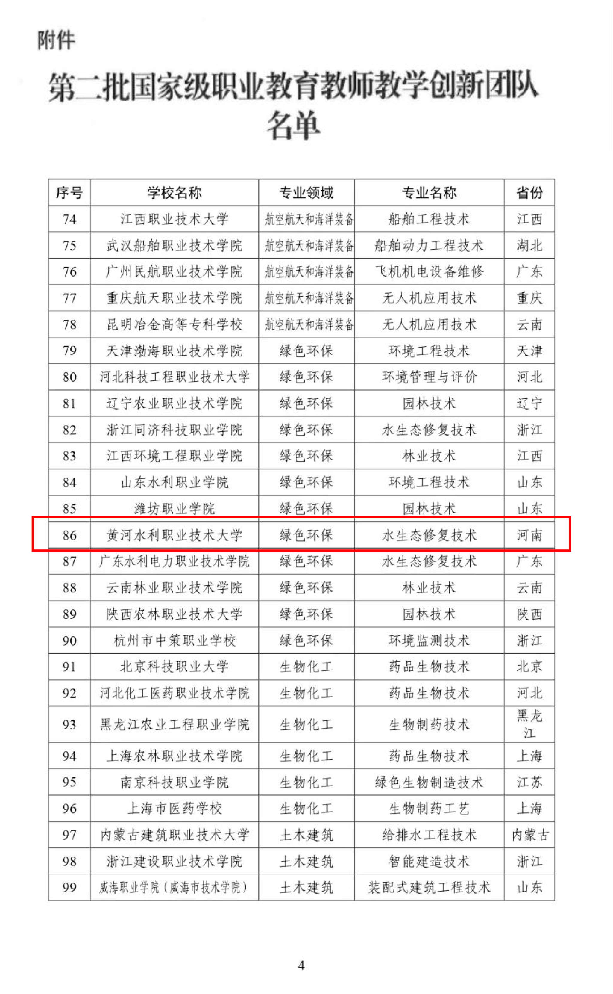 近日,教育部发布了《教育部教师工作司关于公布第二批国家级职业教育教师教学创新团队名单的通知》,黄河水利职业技术大学水生态修复技术专业国家级职业教育教师教学创新团队成功通过验收,这是完美网页版在职业教育师资队伍建设方面取得的又一重要成果。