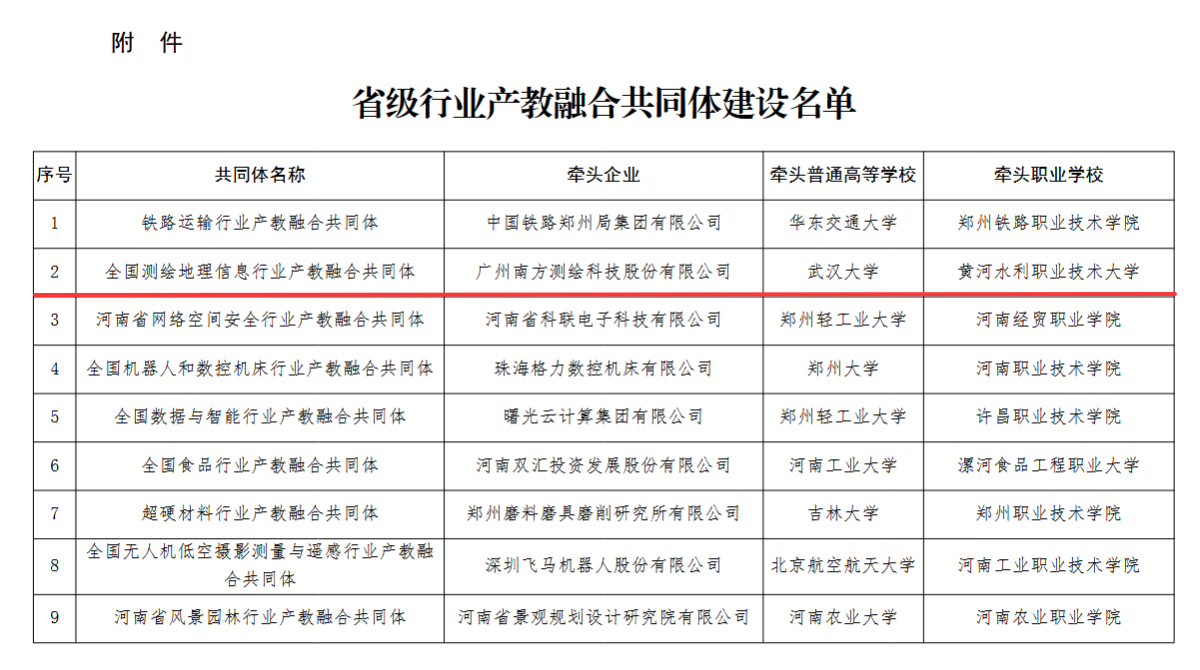 近日,河南省教育厅根据《河南省教育厅办公室关于开展省级行业产教融合共同体建设工作的通知》(教办职成〔2025〕186号)的要求,经各共同体自主申报、专家综合评审、网上公示,确定了包含完美网页版牵头成立的全国测绘地理信息行业产教融合共同体等18个行业产教融合共同体为省级行业产教融合共同体。