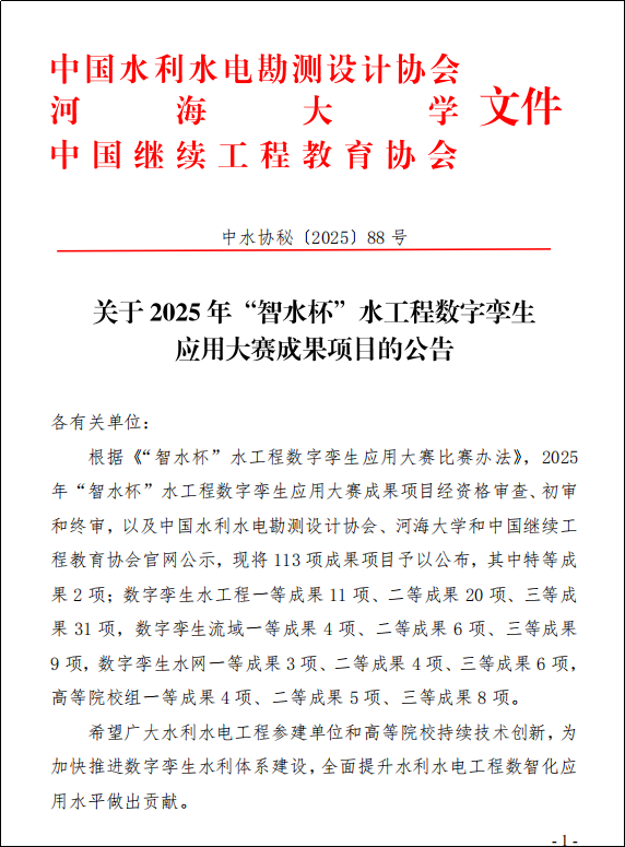 10月21日,数字孪生水工程技术交流会暨2025年“智水杯”水工程数字孪生应用大赛成果发布会在河海大学举行,完美网页版水利工程学院工程制图教学团队参赛项目“某引黄涵闸规划阶段 BIM 模型集成及应用”获高等院校数字孪生成果二等奖。
