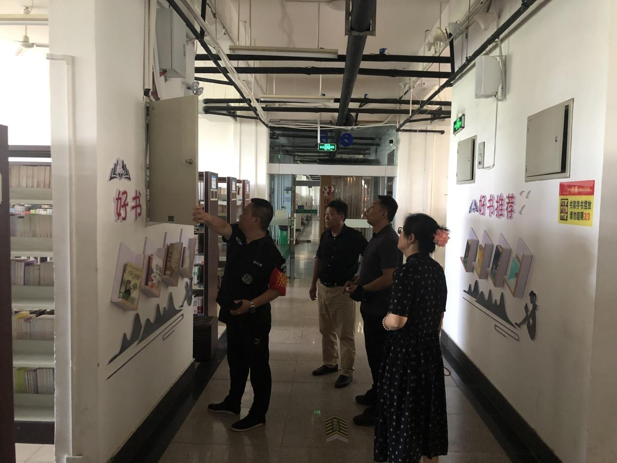 为确保暑假期间图书馆安全稳定,建设平安校园,7月2日上午,图书馆馆长樊建科带领图书馆各科室负责人对全馆开展安全检查。学校保卫处消防科科长杨阳到馆参与安全排查工作。