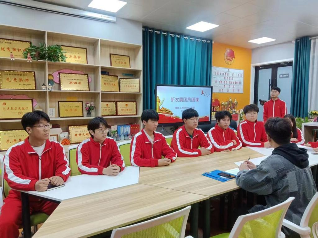 为深入学习贯彻党的二十大精神,加强青年学生思想引领,坚定理想信念,增强新发展团员参与感,提高学习质量。信息工程学院于2023年4月21日晚18:30在SY4409B开展2023年上半年新发展团员团课培训。本次团课由分团委何昕老师授课。