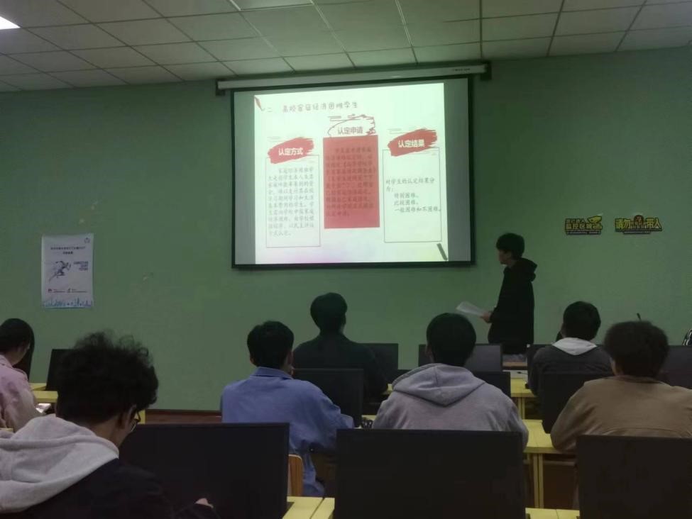 为深入学习贯彻党的二十大精神,进一步宣传大学生资助政策,确保学生知晓并了解在高校阶段国家对家庭经济困难学生的资助政策,信息工程学院于3月21日在实训楼4405A2组织开展资助政策宣讲活动。