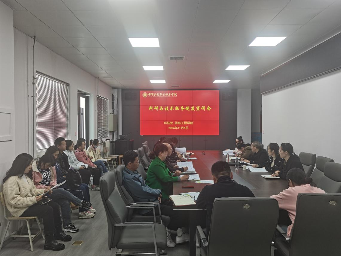 2024年11月5日,信息工程学院成功举办了科研与技术服务制度宣讲会。科技处副处长戴玉、聂大勇,信息工程学院领导班子及全体教师参加了会议。会议由信息工程学院副书记武琳琳主持。此次宣讲会旨在加强学院科研管理,促进科研成果的转化与应用,提升学院科研服务社会的能力。