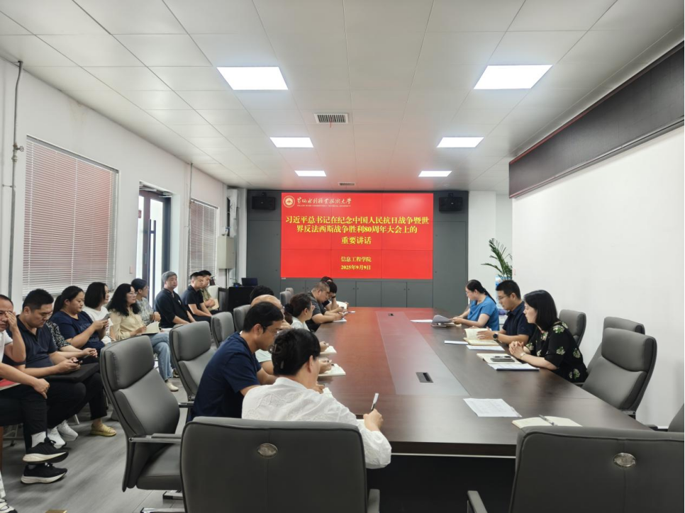 为贯彻落实《黄河水院2025年下半年政治理论学习及思想道德教育计划》学习要求,9月9日,信息工程学院在SY4426组织教职工传达学习新学期工作会议精神,并专题学习习近平总书记在纪念中国人民抗日战争暨世界反法西斯战争胜利80周年大会上的重要讲话和习近平总书记关于教育的重要论述——强化教育对科技和人才支撑作用 形成人才辈出人尽其才才尽其用生动局面,进一步引导全院教职工厚植理想信念,明确新学期工作方向和重点,助推学院高质量发展。
