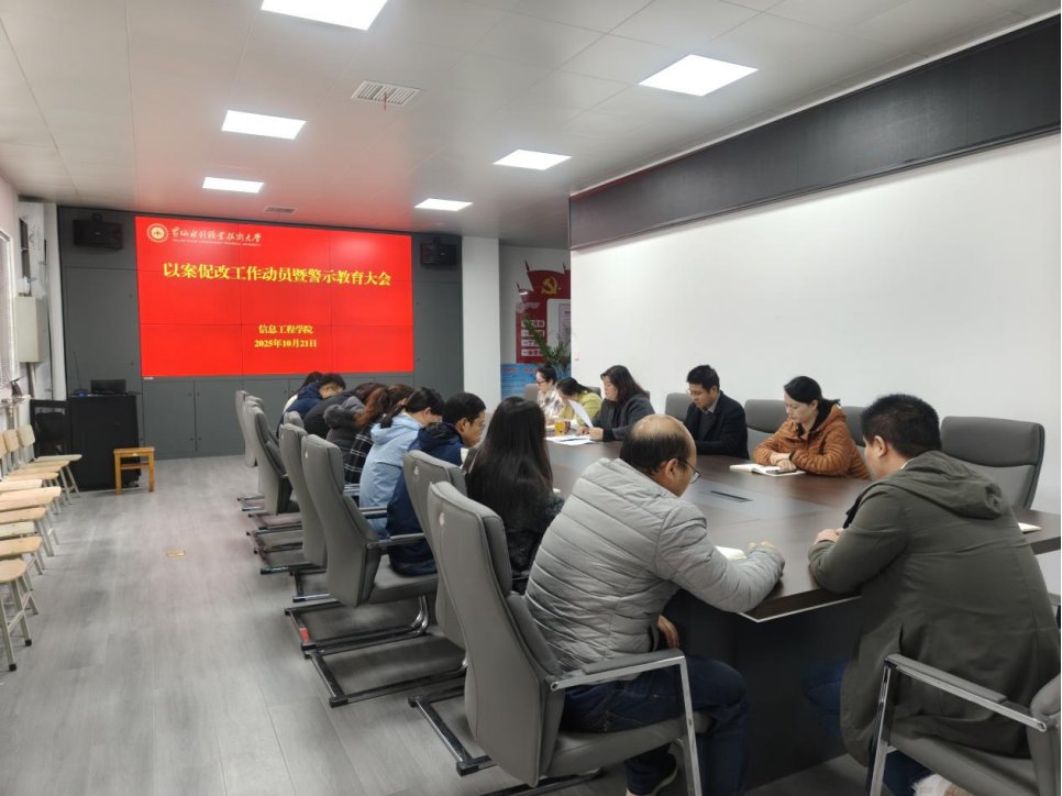 10月21日下午,信息工程学院在SY4426会议室召开“以案促改”动员部署暨警示教育大会。学院党总支书记李晓娟主持,全体科级以上干部及教研室负责人参会。
